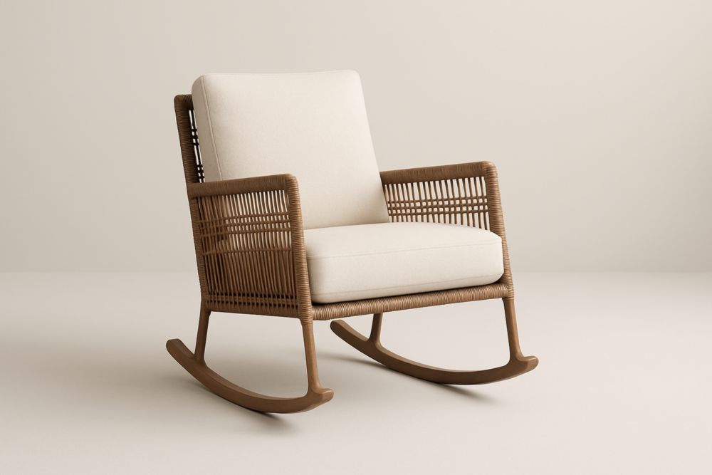 Sedia da giardino in rattan marrone con cuscini in poliestere crema